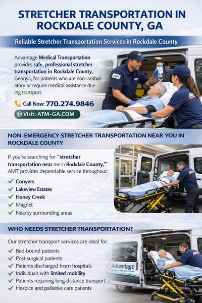 Advantage Medical Transportation provides safe, professional stretcher transportation in Rockdale County, Georgia, for patients who are non-ambulatory or require medical assistance during transport.